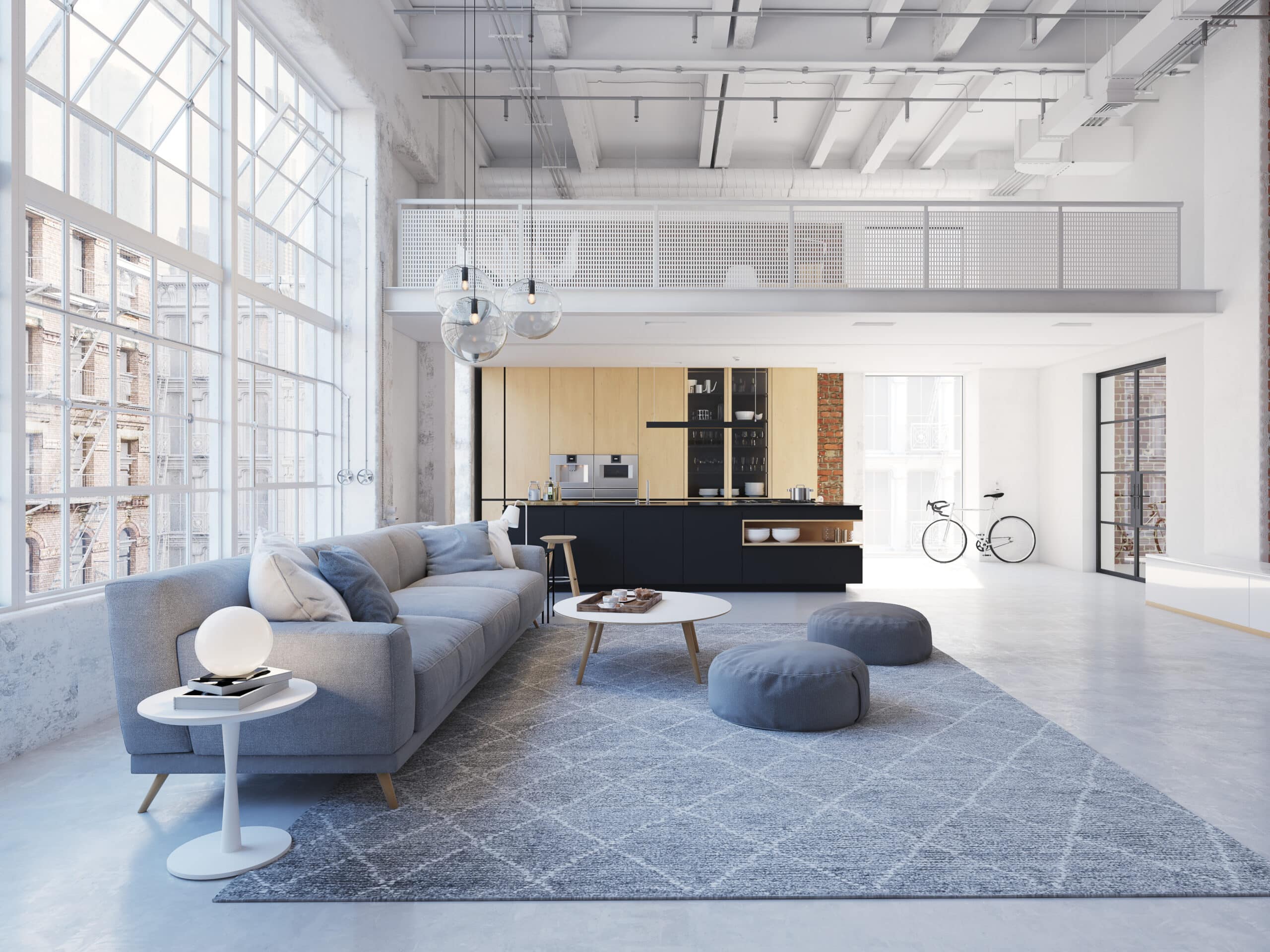 3D-Illustration of a new modern city loft apartment.